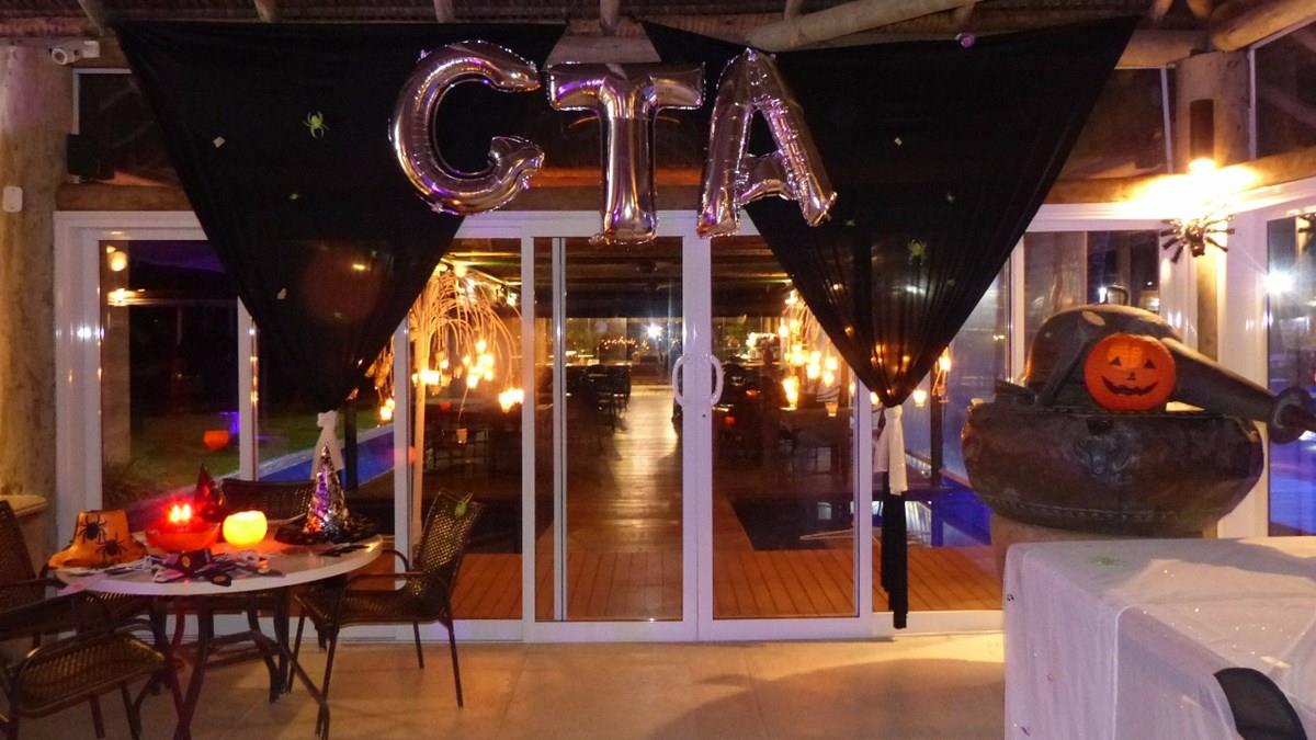 Depois, todos se reuniram para uma festa com a temática de Halloween.