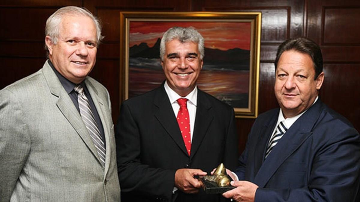 O presidente da Associação Brasileira da Indústria de Hotéis do Rio de Janeiro, Alfredo Lopes, e o diretor do Rio Convention & Visitors Bureau, Paulo Senise, entregaram um troféu estilizado do Pão de Açúcar e do Corcovado, para o presidente do Tribunal de Justiça do Rio (TJRio), Luiz Zveiter, pela sua atuação à frente do Judiciário fluminense.