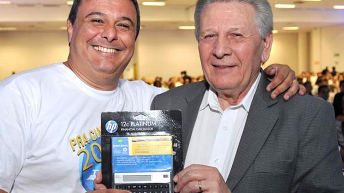 O humorista Pedro Manso, conhecido por realizar imitações de Fausto Silva, comandou a cerimônia que começou com o anúncio do novo vice-presidente Administrativo e Financeiro da empresa, Leonardo Ortega, antes diretor de Controladoria.