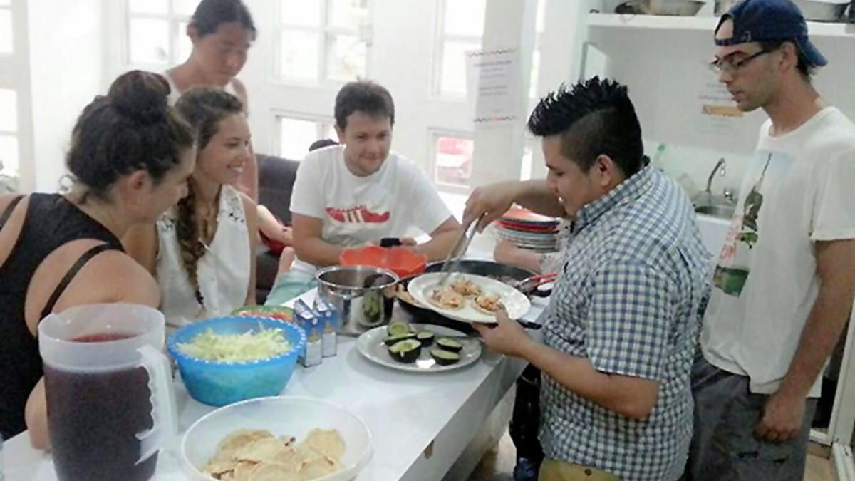 O repórter Rodrigo Vieira (de camiseta branca com desenho de um tênis vermelho), que está comandando a terceira temporada do blog Intercambiando, está na Riviera Maya, no México, para 30 dias de puro aprendizado.