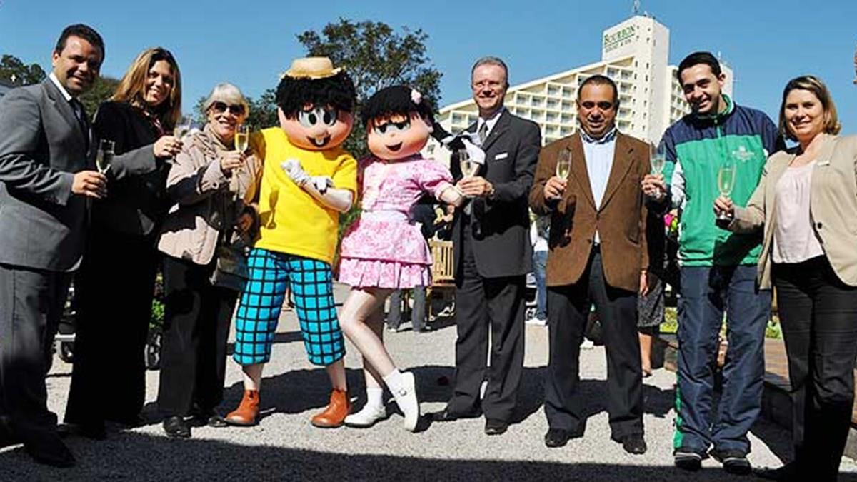 Neste último dia 18 de junho, os personagens criados pelo desenhista Maurício de Sousa – Chico Bento e Rosinha – visitaram o Bourbon Atibaia Spa Resort, no interior paulista, para celebrar a inauguração oficial de dois novos espaços temáticos: Sítio do Vovô e Espaço Chico Bento. Cerca de 400 pessoas, entre adultos e crianças, tiraram fotos e se divertiram com o casal caipira e ainda saborearam alguns quitutes típicos da roça.