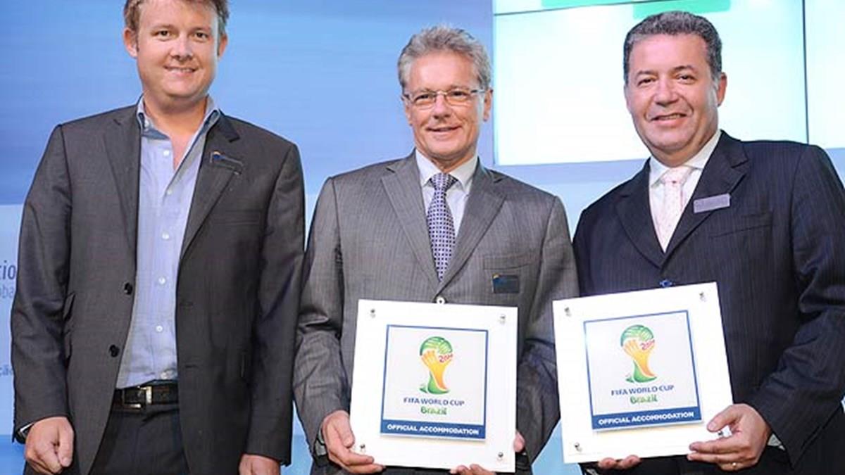 O presidente da Accor para América Latina, Roland de Bonadona, e o presidente da FBHA, Alexandre Sampaio, receberam uma placa das mãos do diretor de Marketing da Fifa para Copa do Mundo 2014, Jay Neuhaus. O prêmio significa que eles representam a hotelaria oficial da Copa. “Espero que muitos empreendimentos brasileiros recebam essa placa”, diz Sampaio.