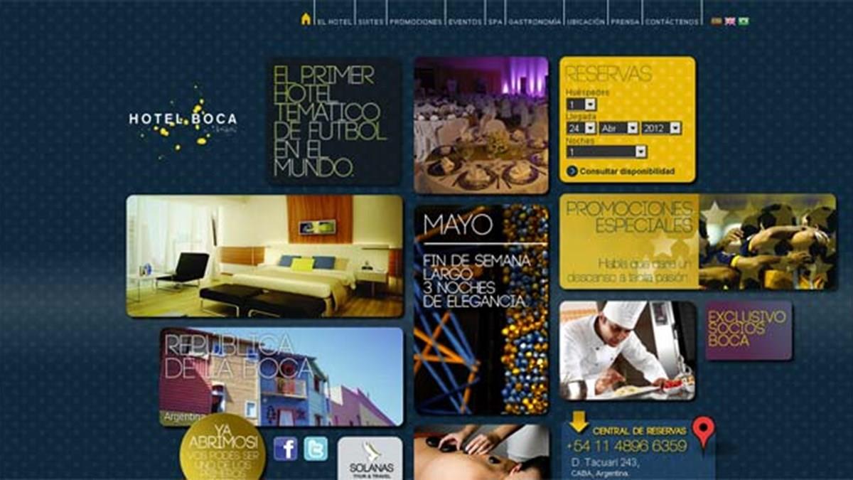 Tão apreciadores do futebol quanto os brasileiros, os argentinos comemoram o início das operações do Hotel Boca by Design Suítes, aberto no final do mês passado. Tendo como tema o clube de futebol Boca Juniors, um dos principais da Argentina, o hotel, em Buenos Aires, conta com 89 apartamentos espalhados por 17 andares e é considerado cinco estrelas, de acordo com o gerente comercial Pablo Veloso. O empreendimento tem spa, fitness Center, restaurante e área para eventos e convenções. O hotel está localizado no centro de Buenos Aires, na rua Tacuari, 243. O site do empreendimento é o www.hotelbocajuniors.com.