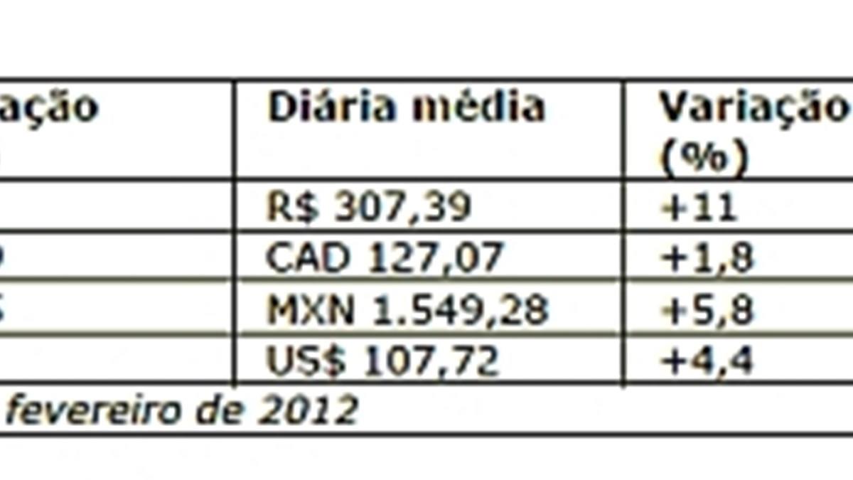O Brasil também teve queda na ocupação, -1,6%, e a taxa mensal em fevereiro ficou em 60%. A diária média, porém, teve acréscimo de dois dígitos, +11%, chegando a R$ 307,39. O Revpar foi outro item positivo, R$ 184,49, com um incremento no período de 9,2% comparado a fevereiro de 2012.