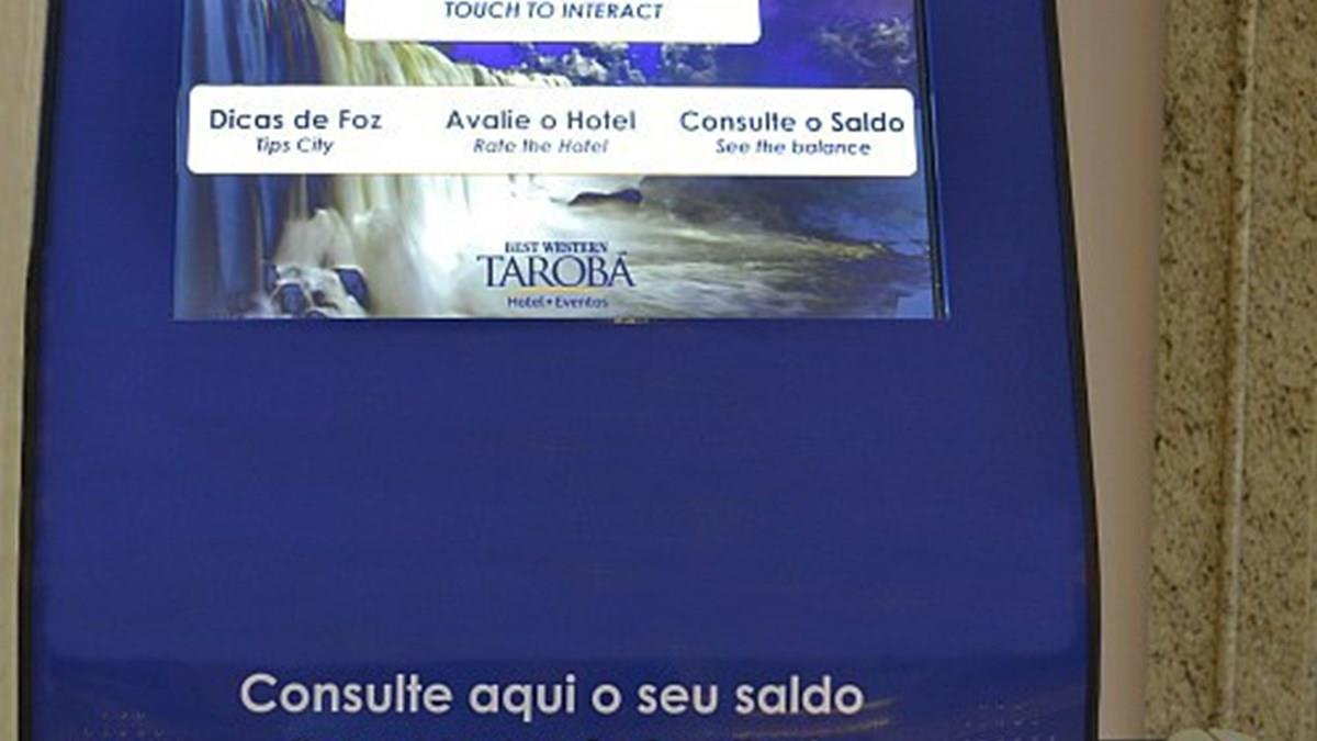 OBest Western Tarobá Hotel, de Foz do Iguaçu (PR), instalou na recepção um totem interativo com diversos serviços úteis, que permite que hóspedes consultem gastos no hotel, deixem comentários e avaliem os serviços