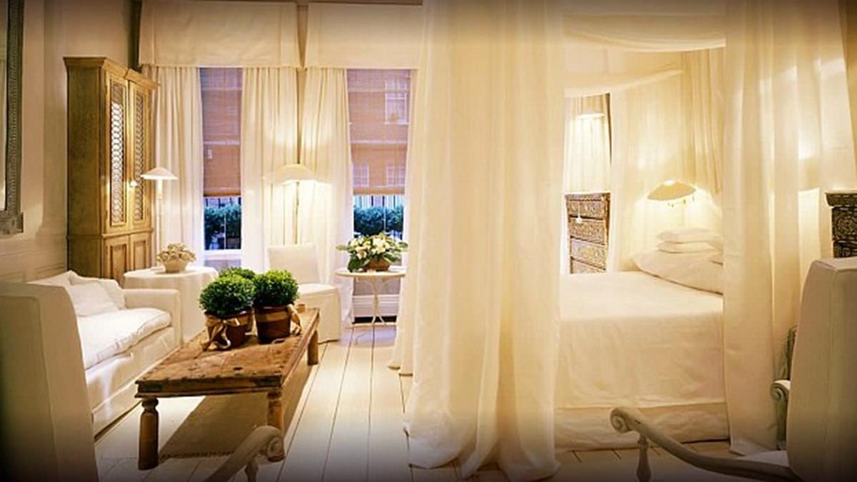 O empreendimento, que se descreve como o primeiro hotel butique do mundo, tem cada um de seus quartos com um estilo único, todos inspirados por várias terras distantes: Rússia, Índia, Turquia, como descreve o próprio site. O quarto eleito foi inspirado no balneário grego de Corfu. “A decoração, embora impregnada de anos oitenta para alguns, é a prova de gosto impecável e surpreendente atenção aos detalhes”, diz o Mr. and Mrs. Smith.