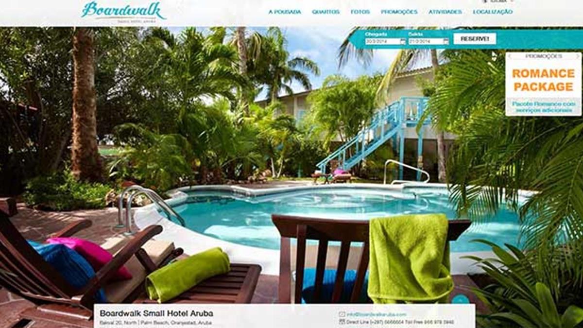 O hotel Boardwalk Aruba é, segundo o empreendimento, o primeiro na ilha a lançar um site em português. Uma estratégia da direção para atrair mais clientes brasileiros e expandir a sua receita em reservas e vendas.