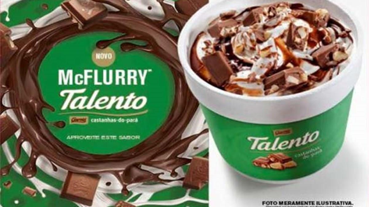 O McFlurry Talento Castanhas-do-Pará combina sorvete de baunilha, calda de chocolate e pedacinhos do chocolate da Garoto, criando um mix de sabores típicos do Brasil.