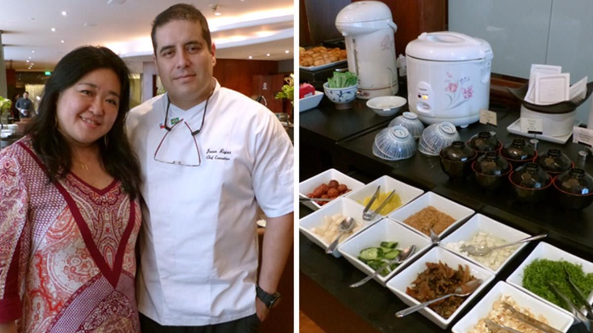 O café da manhã japonês é servido entre as 6h e 10h, com pratos preparados pelo chef Juan Rojas sob supervisão da gerente de Vendas. Rojas, de origem chilena, especialista em culinária francesa e italiana que antes atuava como diretor de Alimentos e Bebidas do Hotel Ritz Carlton Santiago, no Chile, considera um desafio preparar as iguarias de acordo com o padrão de qualidade ao qual os japoneses estão acostumados.