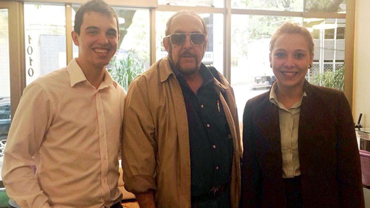 Na ocasião, o ator posou para foto ao lado do chefe de recepção, Rodolfo Oliveira, e da agente de hospitalidade do empreendimento, Camila Vieira.