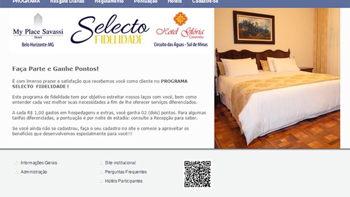 O Programa Selecto Fidelidade, que grupo mineiro Engecom lançou há quatro meses para beneficiar os hóspedes do Hotel Glória Caxambu, localizado em Caxambu, e do My Place Savassi Hotel, localizado em Belo Horizonte, teve a adesão de mais de 90% dos clientes. O programa permite o acúmulo de pontos para serem trocados por diárias nos dois hotéis.