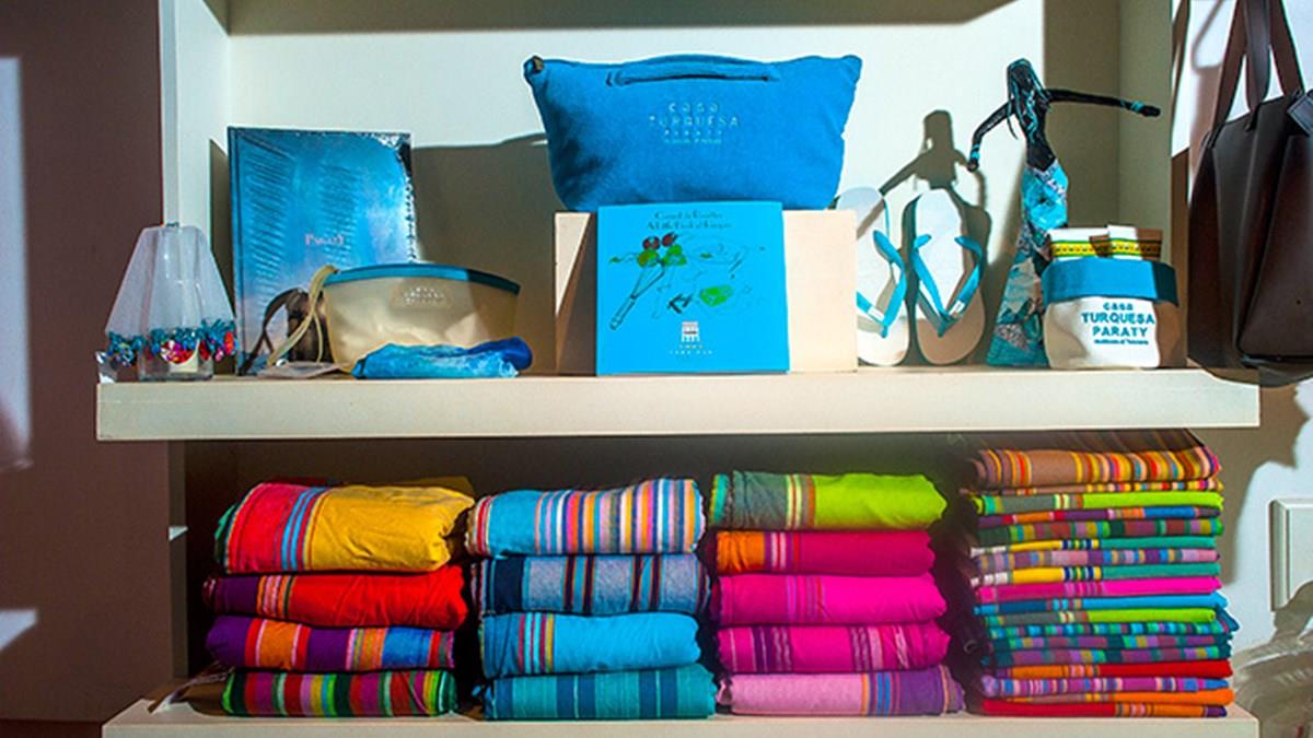 De frente para o cais do porto de Paraty (RJ), o hotel boutique Casa Turquesa está investindo em um novo segmento: produtos exclusivos. A loja de souvenires já iniciou a venda de itens como toalhas de praia, nécessaires e bolsas com o bra