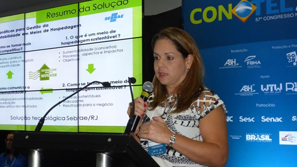 Na abertura do segundo dia do 57o Congresso Nacional de Hotéis (Conotel 2015), hoje à tarde em São Paulo, Vanessa Cohen, da Coordenação de Turismo do Sebrae-RJ, falou sobre o projeto “Boas Práticas para Gestão da Sustentabilidade”. É desenvolvido em pousadas, hotéis e hostels no Estado do Rio de Janeiro.