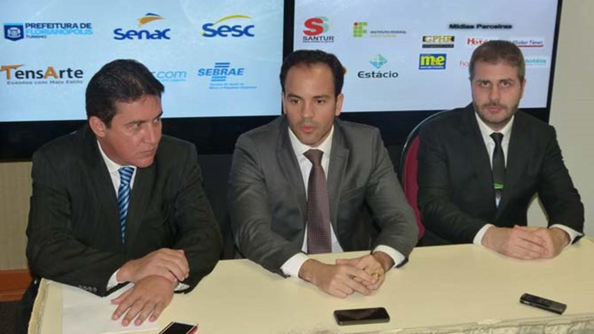 FLORIANÓPOLIS (SC) – A Encatho & Exprotel, evento direcionado ao setor hoteleiro na região sul que acontece até amanhã (sexta-feira, dia 29), das 9h às 21h no Centro de Convenções da cidade, promoveu a coletiva oficial de abertura ontem (27), com a participação do presidente da ABIH Nacional, Enrico Fermi Torquato, o presidente da ABIH Santa Catarina, Samuel Koch e do Secretário do Estado, Turismo, Cultura e Esporte, Filipe Mello, que representou o governador Raimundo Colombo no evento.