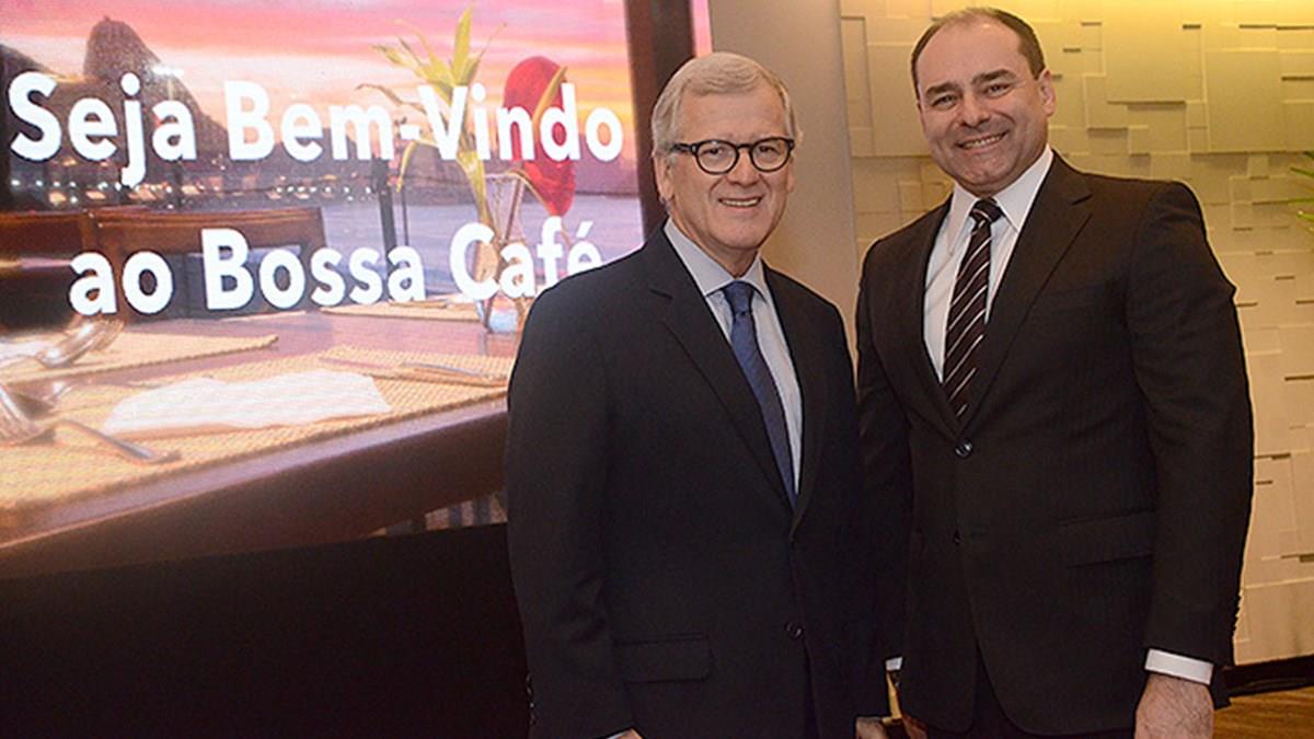 O presidente do grupo hoteleiro e o diretor comercial, Fernando Chabert e Tomás Ramos, respectivamente, receberam o trade do Rio para apresentar o novo restaurante, inspirado na Bossa Nova e que ganhou o nome de Bossa Café