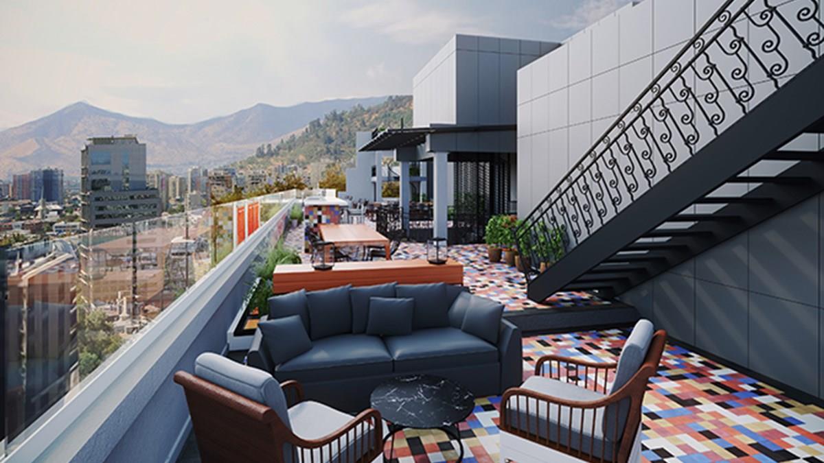 O empreendimento contará com um lobby lounge bar, restaurante e terraço com vistas ao Parque Florestal, spa com sauna no subsolo e um terraço de 300 metros quadrados com bar, piscina aquecida e vistas ao Parque e à Praça Baquedano, mais conhecida como Praça Itália.