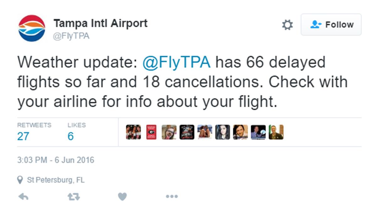 O governador da Flórida, Rick Scott, declarou emergência em 34 condados do estado, e o Aeroporto Internacional de Tampa já conta com 66 voos atrasados e 18 cancelados.