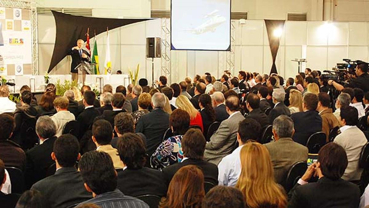 David Neeleman dá uma palestra-aula para locadores de carros no fórum e salão da Abla, em São Paulo