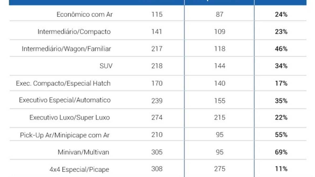 Em uma estimativa feita por uma das empresas, na categoria "Econômico", que representa o maior número de aluguéis, a diferença no preço da diária é de 25%: R$ 115 nas locadoras e R$ 87 no esquema de empréstimo. Em alguns modelos a variação é ainda maior, como as Minivans (69%) e as Minipicapes (55%).