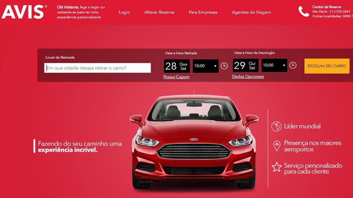 Site da Avis Brasil oferece opção de pré-pagamento