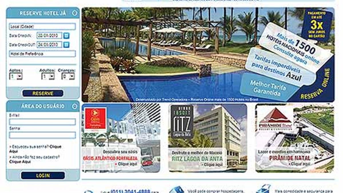 Ao clicar em um hotel, o cliente da Azul tem acesso a um breve descritivo do estabelecimento, ilustrado com fotos. Para consultar a disponibilidade, é só inserir a data da viagem e o número de pessoas. A partir daí o website, que possui todo o conteúdo on-line da Trend, mostra uma relação de opções com as respectivas tarifas. O cliente deve escolher e reservar. O website da Azul é www.voeazul.com.br.