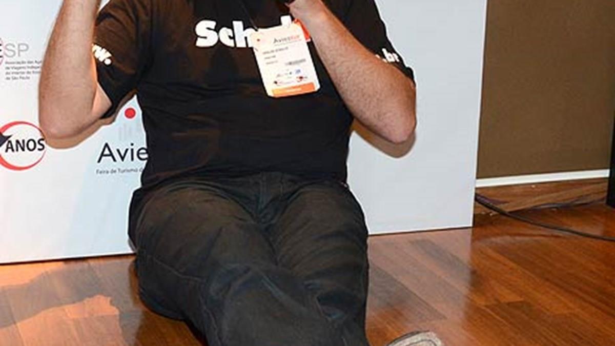Em um futuro próximo, Schultz disse que o agente de viagens terá apoio total da tecnologia. Tanto, que sentou no chão, demontrando como um agente faria o atendimento de seu cliente com o suporte da mobilidade: tomando água de coco na praia.