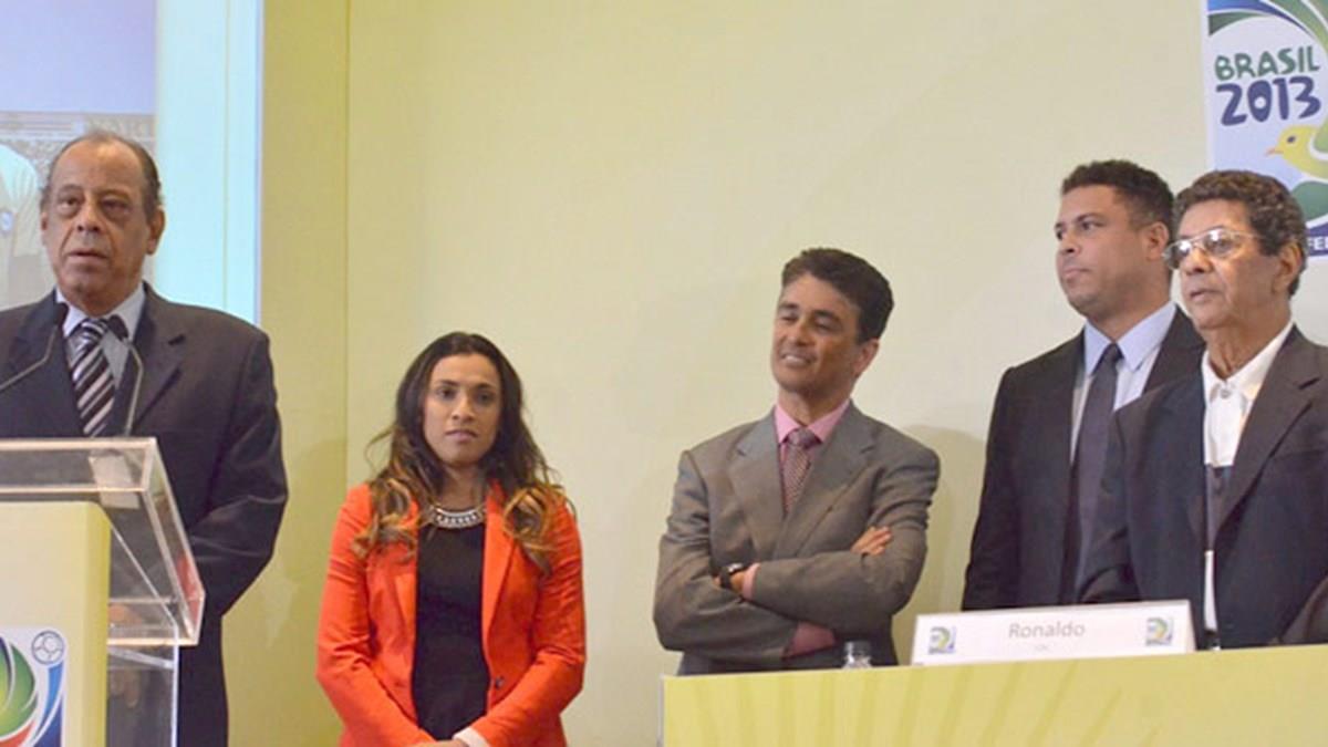 Após anunciar os embaixadores do Brasil para a Copa, a CBF chamou os jogadores e ex-jogadores para serem apresentados à imprensa