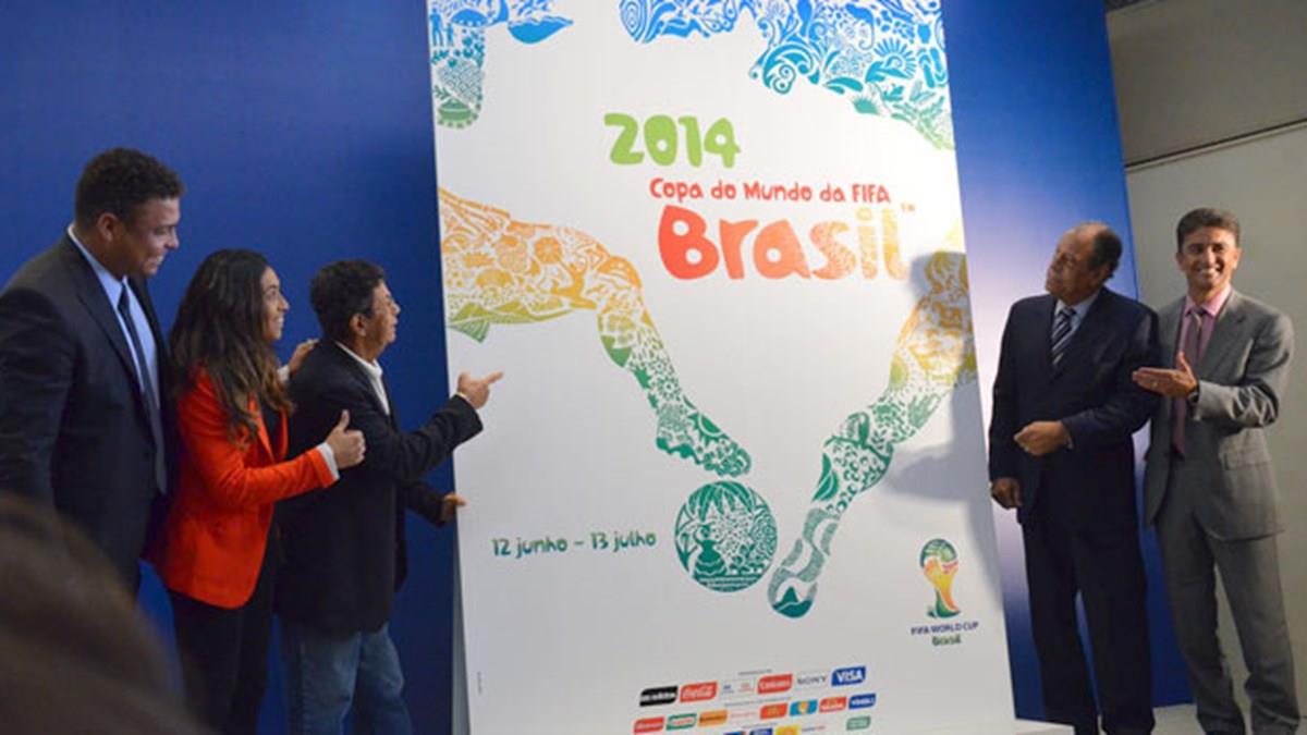A delegação da Fifa, que está no Brasil para vistoriar os estádios das cidades-sedes, acabou de apresentar o cartaz para a Copa do Mundo 2014.