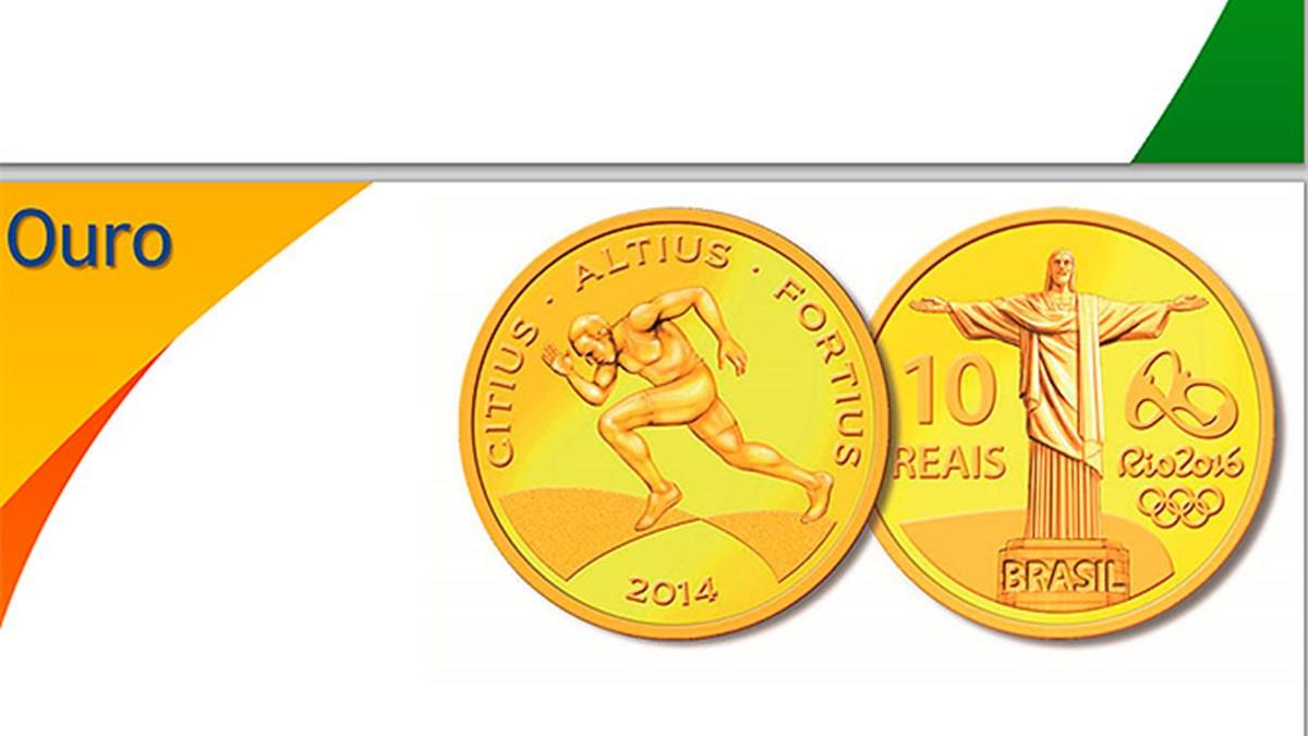 O Banco Central lançará no próximo dia 28 de novembro, no Rio de Janeiro, as primeiras nove moedas comemorativas do programa numismático dos Jogos Olímpicos e Paralímpicos Rio 2016: uma de ouro, quatro de prata e quatro de circulação comum. O programa compreenderá ao todo 36 moedas, que serão lançadas até 2016. A moeda de ouro homenageia, além do Cristo Redentor, a corrida de 100 metros rasos, um dos esportes que representa o lema Olímpico “Citius, Altius, Fortius” (mais rápido, mais alto, mais forte).