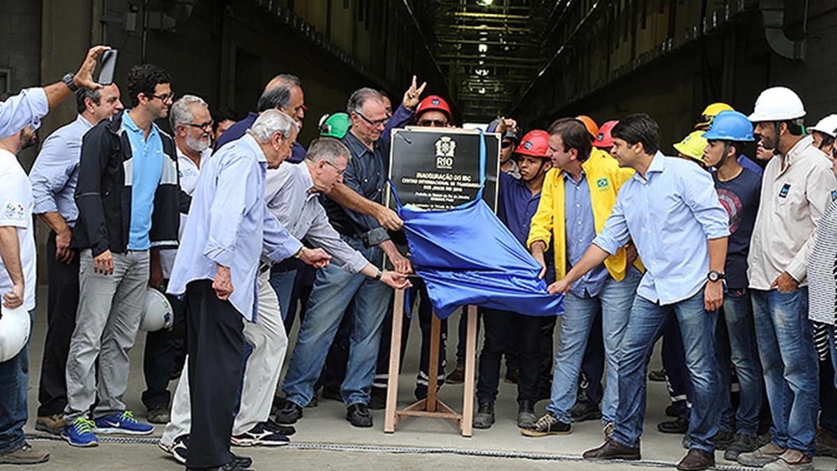 Acompanhado do governador Luiz Fernando Pezão; do secretário de Coordenação de Governo, Pedro Paulo; do presidente do Comitê Rio 2016, Carlos Arthur Nuzman; do presidente da Empresa Olímpica Municipal, Joaquim Monteiro; e do diretor executivo do Comitê Olímpico Internacional (COI), Gilbert Felli, Paes falou sobre a entrega do IBC. Após os Jogos, os prédios serão transformados em um estabelecimento comercial.
