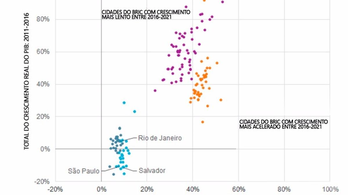 “As cidades brasileiras testemunharam, entre 2011 e 2016, a pior performance econômica entre os mercados urbanos do Bric (Brasil-Rússia-Índia-China).” Esta é a mais recente análise feita pelo Euromonitor International. De acordo com o instituto, as cidades do Brasil analisadas tiveram um encolhimento real de 1,9% em Produto Interno Bruto (PIB).