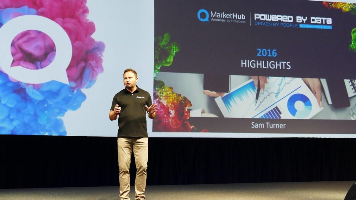 Sam Turner, diretor global de Vendas da Hotelbeds, em apresentação no Markethub Americas