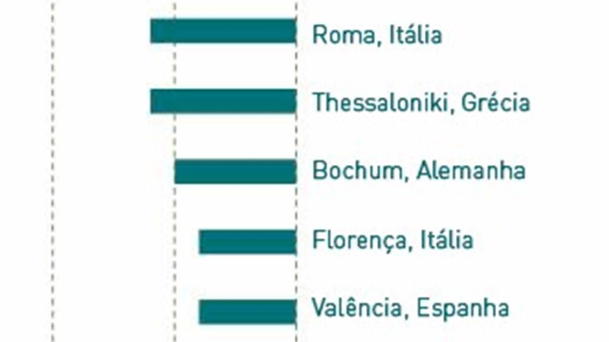 Boston, nos Estados Unidos, Osaka, no Japão, Roma e Salônica (Grécia), tiveram uma redução superior a 5% no número de veículos entre 2010 e 2015. Bochum (Alemanha), Florença (Itália) e Valência (Espanha) também se destacaram nesse aspecto.