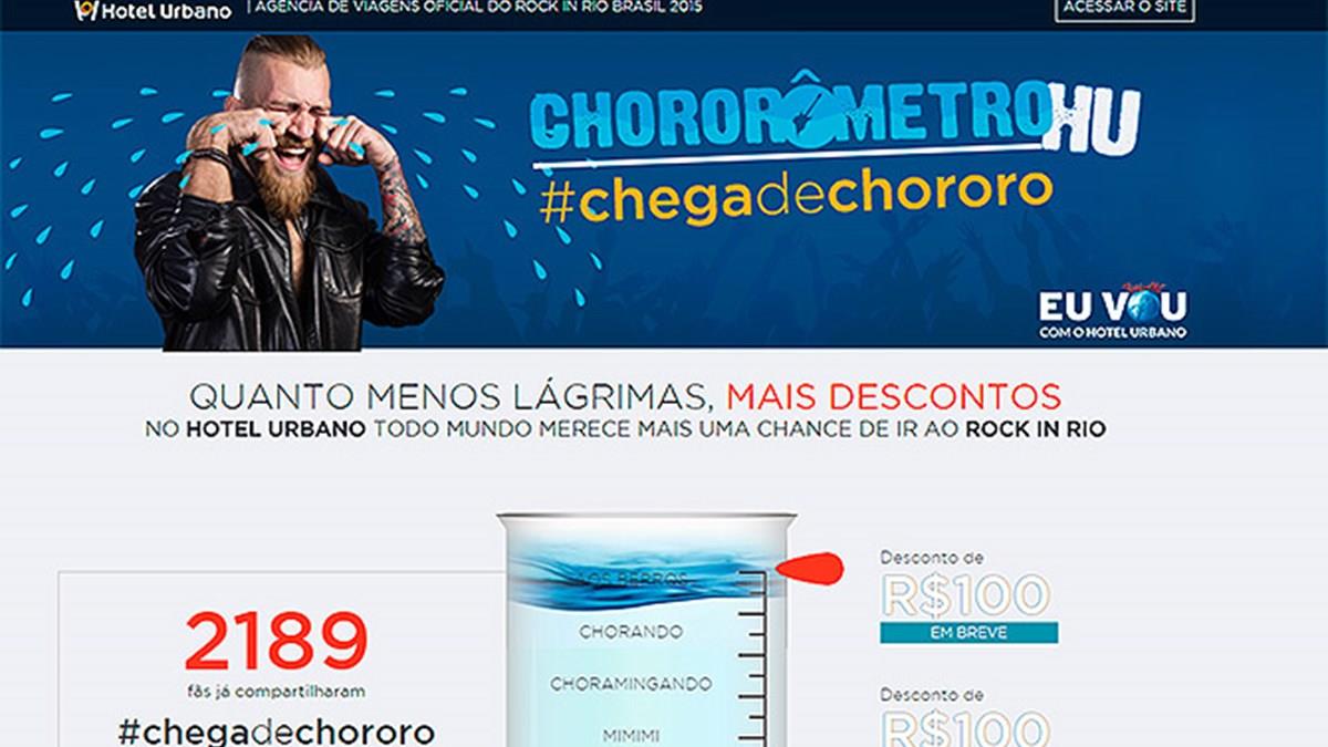 Mais uma vez os ingressos para o Rock in Rio se esgotaram em algumas horas. Agência de viagens oficial do festival, o Hotel Urbano criou o “Chororômetro”, um recipiente medidor de lágrimas que convida os fãs do festival a pararem de chorar.