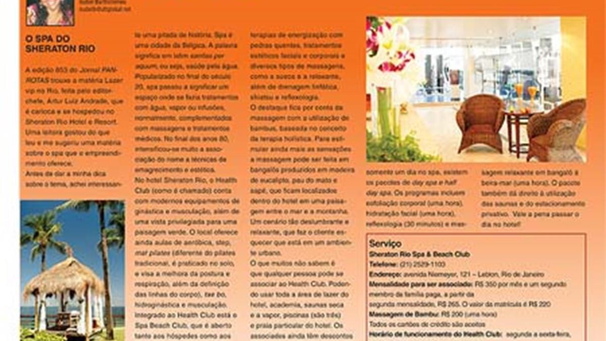 Coluna Dicas do Rio no Jornal PANROTAS destaca spa do Sheraton Rio.
