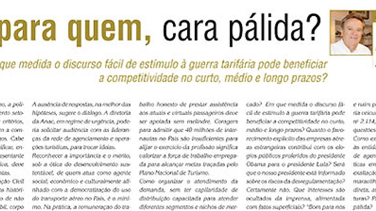 No artigo Bom para quem, cara pálida? da edição desta semana do Jornal PANROTAS, o presidente da Rextur, Goiaci Alves Guimarães, questiona quem, de fato, se beneciará com a guerra tarifária. Para o empresário ainda há setores omissos na indústria e falta diálogo entre o governo e a cadeia produtiva.