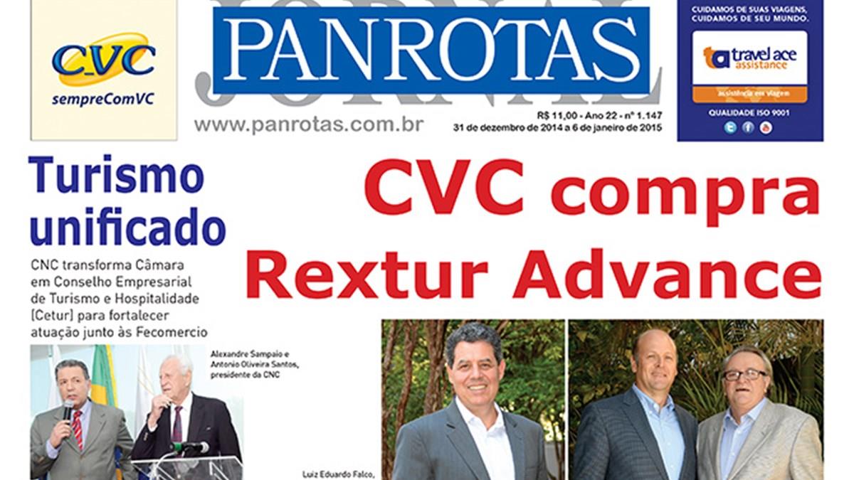 A compra da Rextur Advance pela CVC, anunciada durante o fechamento da edição 1.147 do Jornal PANROTAS, é o destaque desta edição do JP. O último JP do ano, já entrando na primeira semana de 2015, traz as principais notícias de dezembro, com destaque, também, para a criação do Conselho Empresarial de Turismo e Hospitalidade, dentro da Confederação Nacional de Comércio de Bens, Serviços e Turismo (CNC). A edição traz ainda: