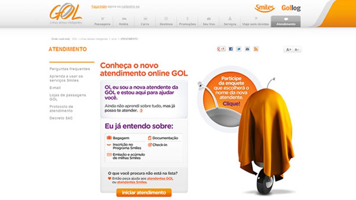 A robô virtual ainda não tem nome. Por isso, a Gol criou a campanha Me Chama, na página do facebook – facebook.com/voegol. Os internautas têm de votar em uma das cinco opções de nomes, que ficarão disponíveis durante 30 dias.