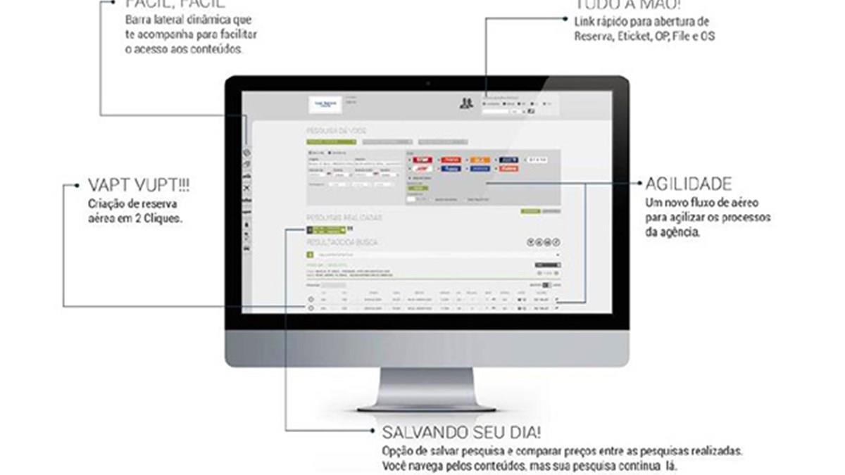 Na versão 3.0, o destaque é o fluxo de venda de aéreo, que promete maior agilidade durante o processo de pesquisa, disponibilidade e reserva, e facilidades como criação de reserva com dois cliques e comparação entre pesquisas.