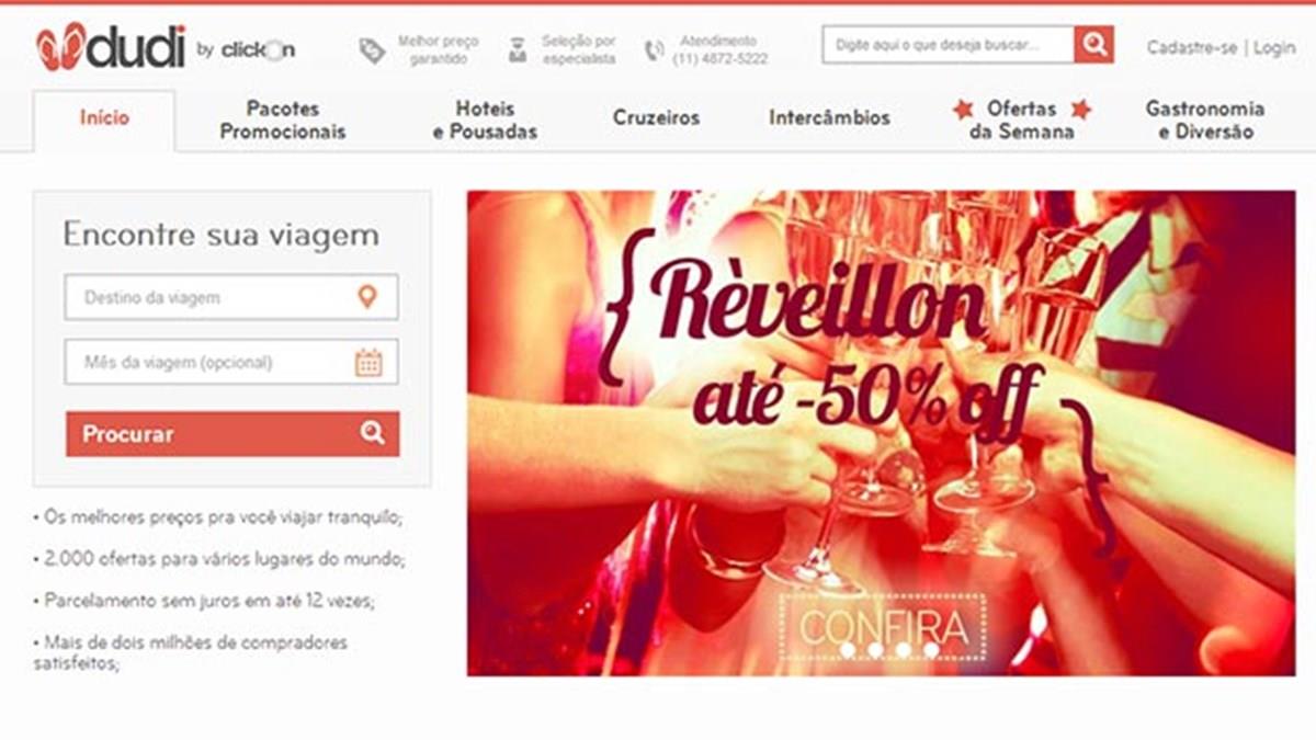 O Click On vendeu sua primeira viagem no início de 2012, em um pacote para Orlando (Estados Unidos). No período de cinco dias, vendeu mais de dois mil pacotes e a empresa identificou que seus clientes tinham interesse em desbravar o mundo. Daquele momento em diante, foram oferecidos no Click On mais de 16 mil ofertas de viagens para cerca de 400 destinos em todo o mundo. Aos poucos a participação do segmento nas vendas totais da empresa passou de zero a 65% e, agora, lançaram o Dudi, sua agência de viagens on-line.