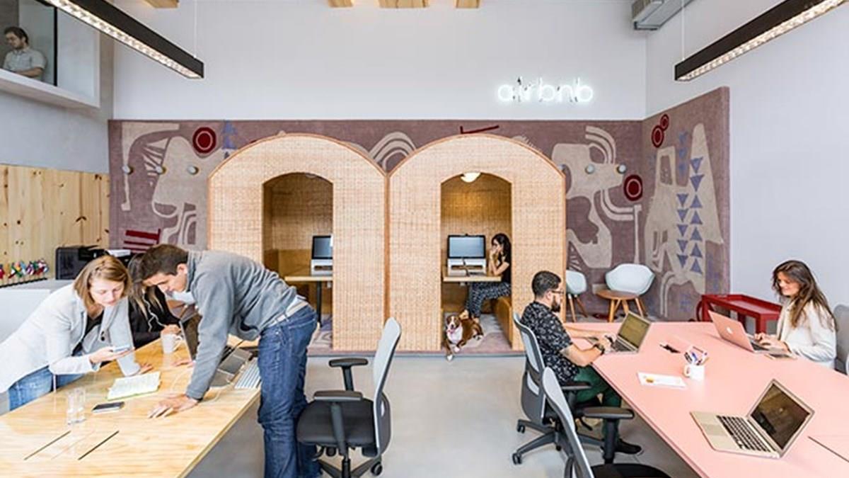 Com uma atmosfera “descolada”, como costumam ser empresas de tecnologia como Google e Facebook, o Airbnb na Vila Madalena promove o senso de compartilhamento. As refeições são feitas em uma mesa só, com uma cozinha em que todos preparam juntos seus alimentos. Os profissionais da empresa também possuem sala para a prática de yôga e para descansar durante o expediente. A unidade de São Paulo representa um dos 15 escritórios do Airbnb pelo mundo.