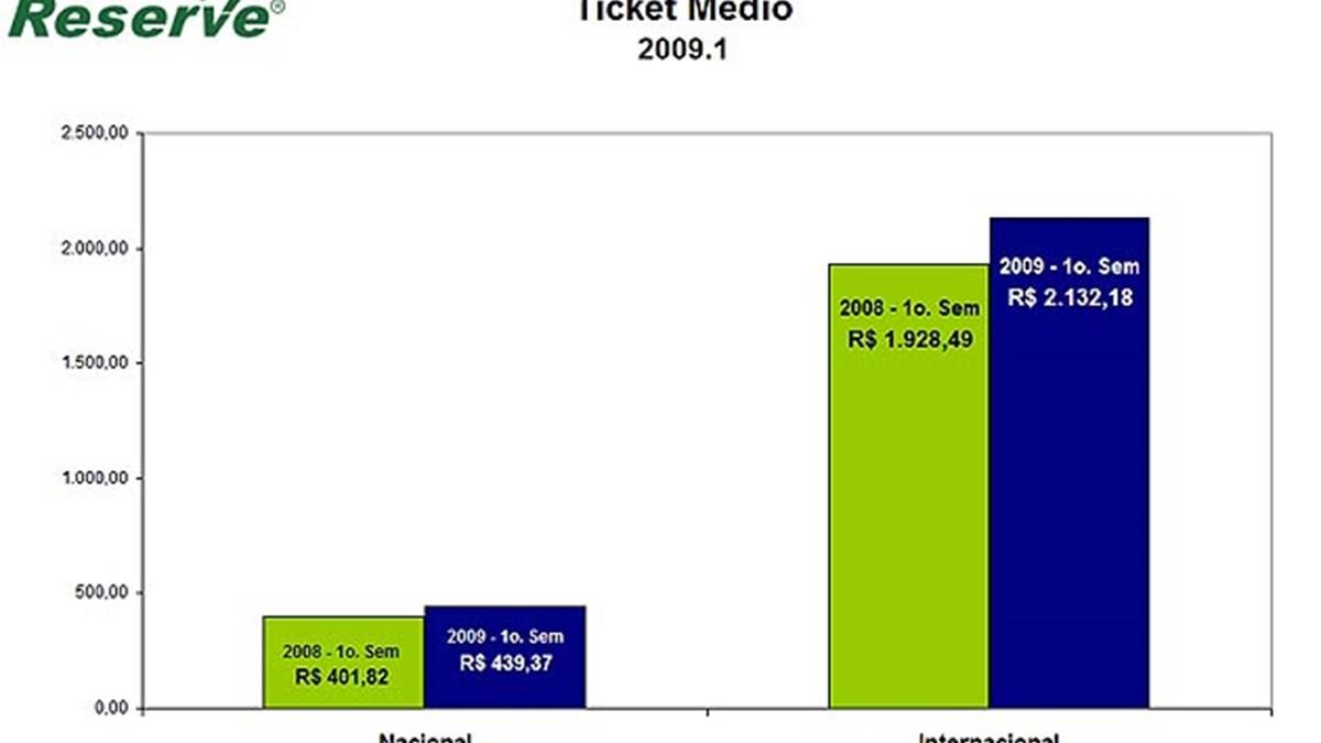 A tarifa aérea média nacional via Reserve subiu de R$ 401,82 para R$ 439,37 este ano (menor que a do Favecc, de R$ 462,79). Já a internacional ficou em R$ 2.132,18 (também maior que no ano passado, R$ 1.928,49, e também acima da registrada pelas agências Favecc no mesmo período, que foi de R$ 2.076,82).