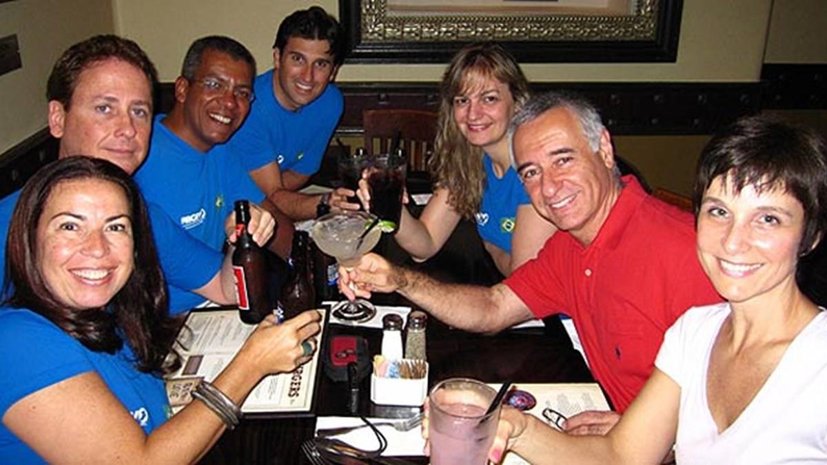 Parte do grupo reuniu-se hoje em almoço no Hard Rock Cafe da cidade para apresentações e orientações gerais. A maioria dos participantes está no evento pela primeira vez.