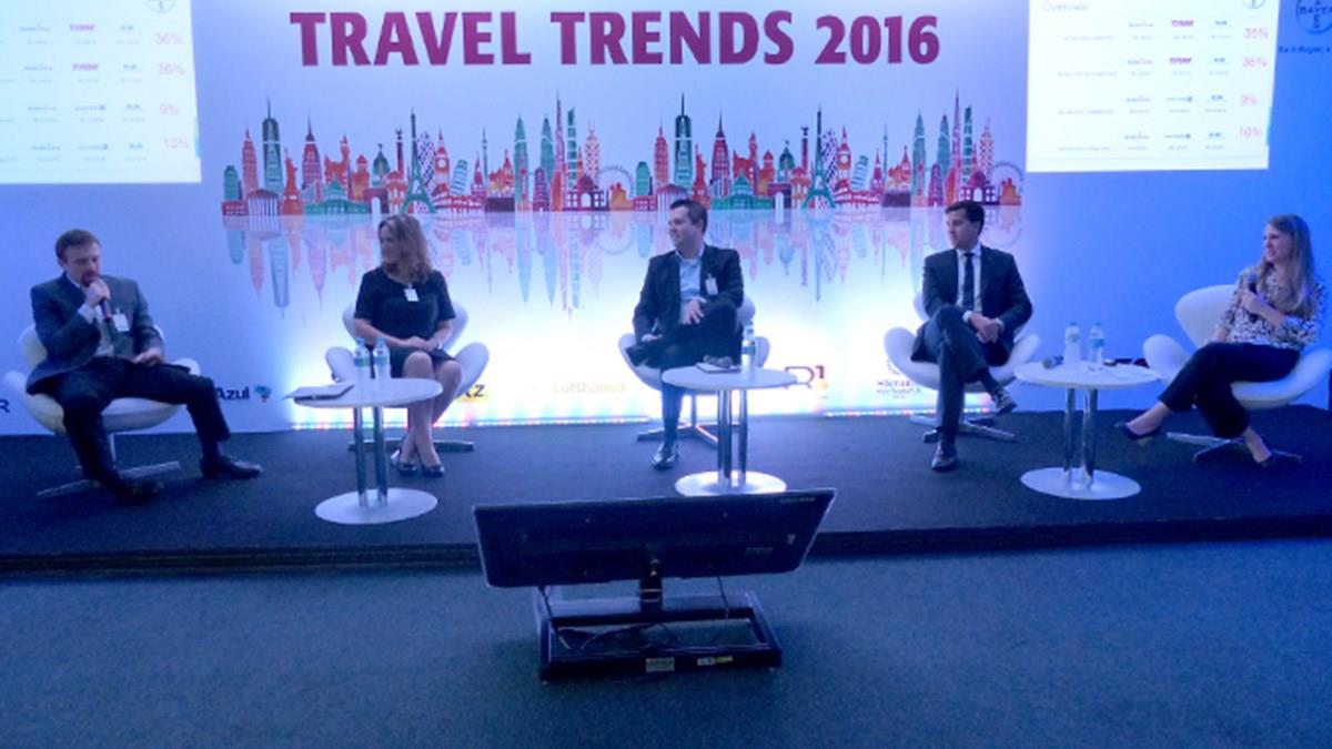 O painel de debate "Viagens na internet vs. Viagens Corporativas" foi mediado pela travel manager da Bayer, Juliana Patti, e contou com a participação de David Arcos, da Latam, Lucimar Reis, da United, Gustavo Elbaum, da CWT e Paulo Frias, da Accor