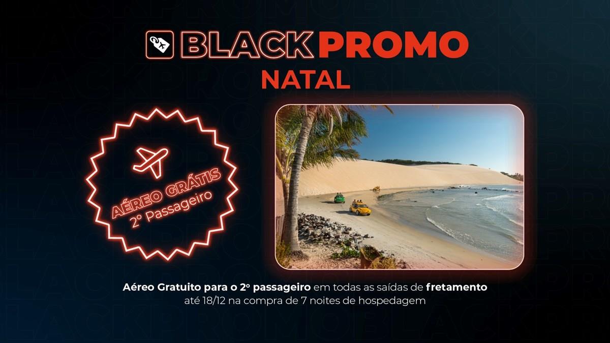 Outra grande novidade apresentada pela BlackPromo VP é a oferta de AÉREO GRÁTIS para o 2º passageiro em pacotes de 7 noites para Natal, no Rio Grande do Norte, com embarque em Belo Horizonte. A campanha é válida apenas para embarque nos fretamentos semanais da VP para o destino potiguar, até o dia 18 de dezembro, desde que compradas durante o mês de novembro.