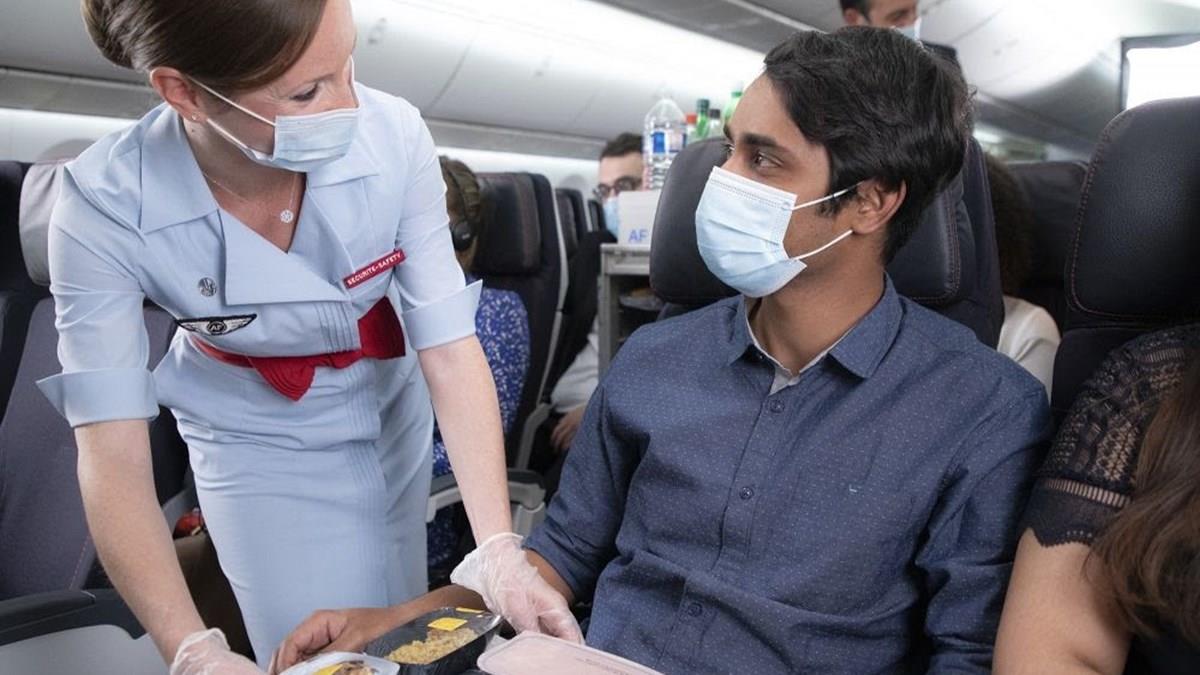 Nas cabines econômica e premium economy, a companhia continuou proporcionando um serviço completo de refeições, incluindo um prato quente e bebidas quentes e frias, durante a crise. Em voos com duração entre 6 horas e 30 minutos e 8 horas e 30 minutos, um segundo serviço de café da manhã está sendo novamente servido em uma sacola "Bon Appetit" da Air France.