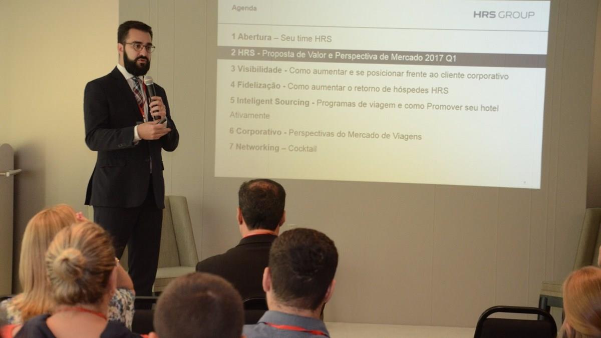 A HRS organizou hoje uma apresentação, seguida de coquetel, para hoteleiros. em São Paulo. Alguns dos processos da empresa de tecnologia foram explicados, além de temas, como perspectivas de mercado e aspectos das viagens corporativas, que foram abordados.