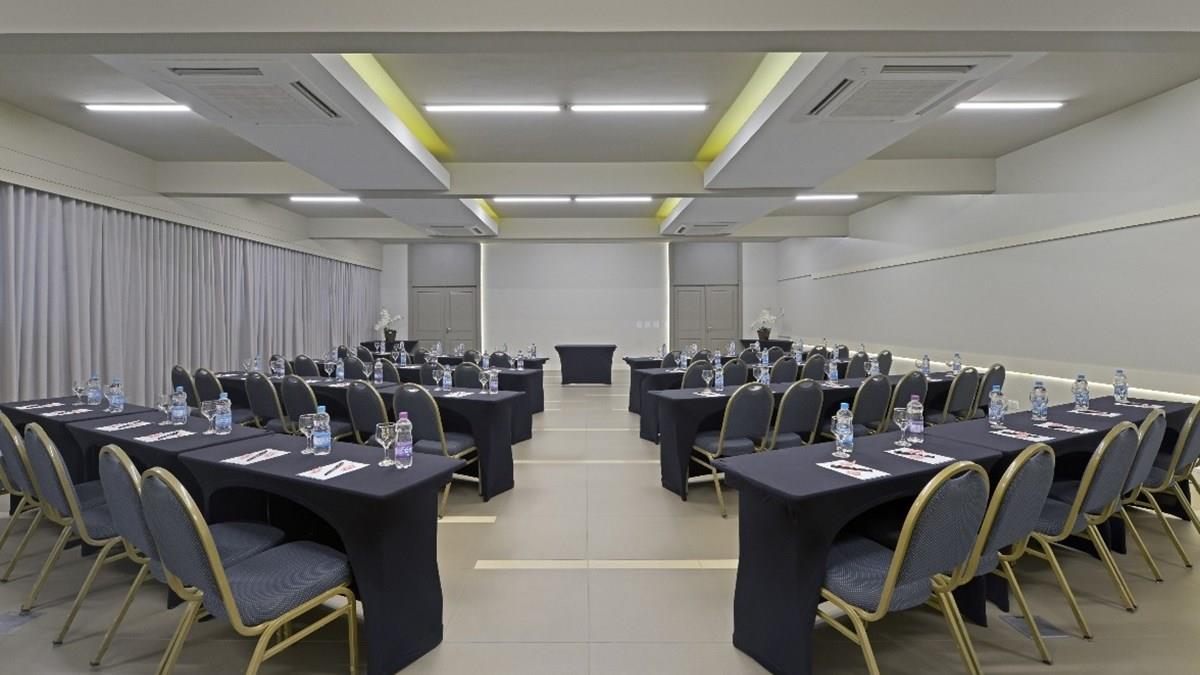 O gerente de Arquitetura e Interiores da Rede Deville, René Giuliani, conta que as principais alterações foram a troca de piso, a substituição do sistema de ar-condicionado e de iluminação. “Pensando no múltiplo uso das salas e em reduzir a manutenção dos carpetes, foi proposta a instalação de um piso de porcelanato com resistência a alto tráfego. A paginação deste piso foi disposta de forma inusitada e assimétrica, explorando o movimento e os diversos modos de montagem das salas”, conta Guiliani.