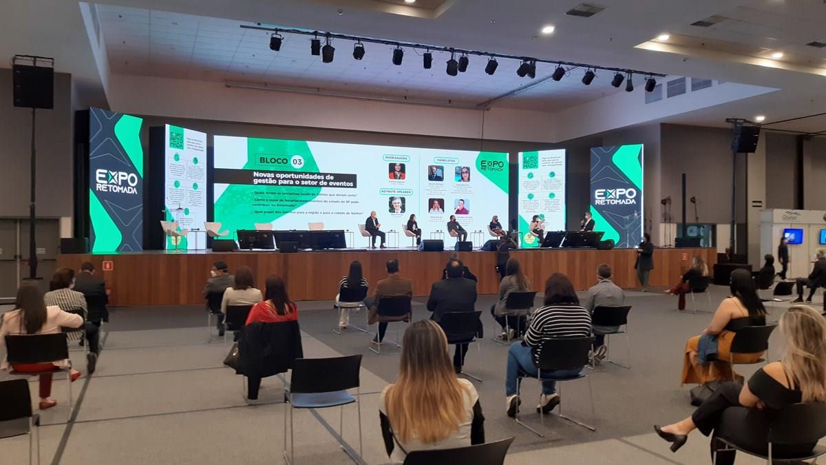 Em dois dias de evento, a Expo Retomada recebeu 1.264 visitantes únicos, não simultâneos, e 240 profissionais envolvidos na montagem, além de 50 expositores no Santos Convention Center, todos testados antecipadamente para a covid-19.
