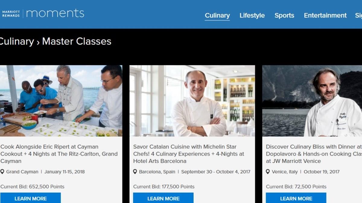 Entre elas, pode-se destacar a possibilidade de criar obras de arte comestíveis, praticar cestas com uma lenda do basquete ou aperfeiçoar o seu backswing com profissionais do golfe. A primeira edição da série trará experiências de aprendizado prático com o gigante do basquete Dwyane Wade, o chef Eric Ripert e o surfista Laird Hamilton, experiências que se unem às outras já oferecidas nas plataformas Marriott Rewards Moments e SPG Moments.